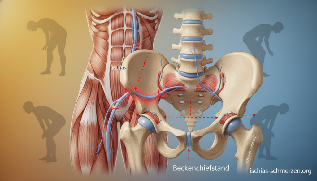 Ja, das ist möglich. Ein funktioneller Beckenschiefstand führt oft zu Verspannungen in der Hüft- und Gesäßmuskulatur. Diese verspannten Muskeln, besonders der Piriformis, können dann direkt auf den Ischiasnerv drücken und typische Nervenschmerzen auslösen. Es ist eine häufige indirekte Ursache für die Beschwerden.