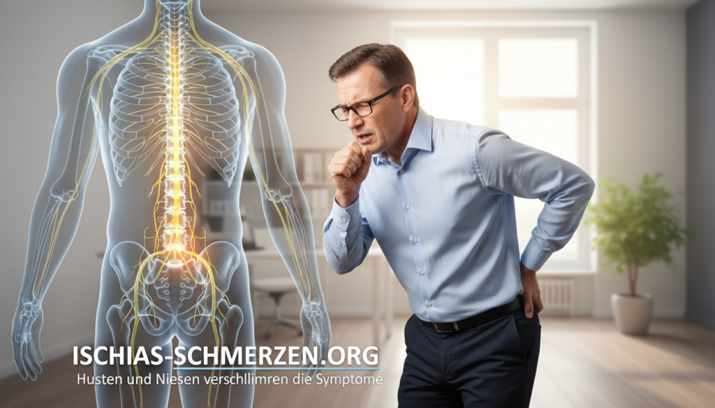 Beim Husten oder Niesen entsteht schlagartig ein hoher Druck im Bauch- und Brustraum. Dieser Druck überträgt sich direkt auf den Wirbelkanal. Dort liegen die empfindlichen Nervenwurzeln des Ischiasnervs.